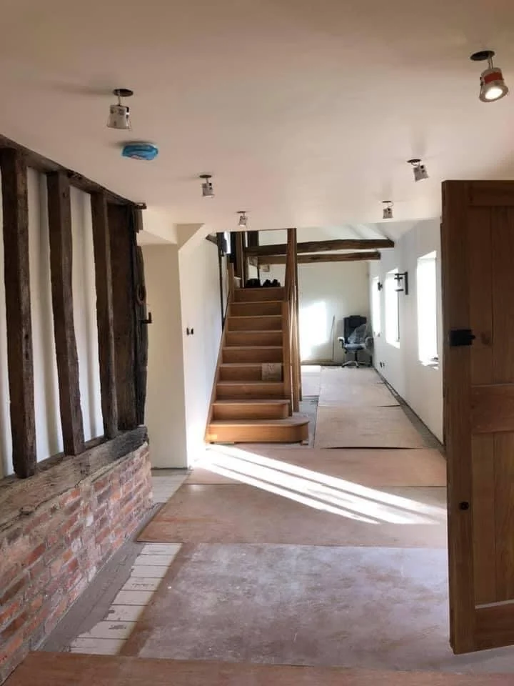 Complete barn conversion which I've been working on for some time needed all existing wiring and fixtures to be removed. Once the fabric of the building was taken back to a shell it enabled me to first fix the whole barn to include two consumer units so that the two halves of the house could be finished at different times. This made the house livable whilst works were being carried out. The second fix consisted of installing spotlights throughout, wet underfloor heating with all manifolds controlled independently from each room, sockets all sympathetically installed to the customers specification, two ovens, high powered induction hob and garden lighting. A large ongoing project.