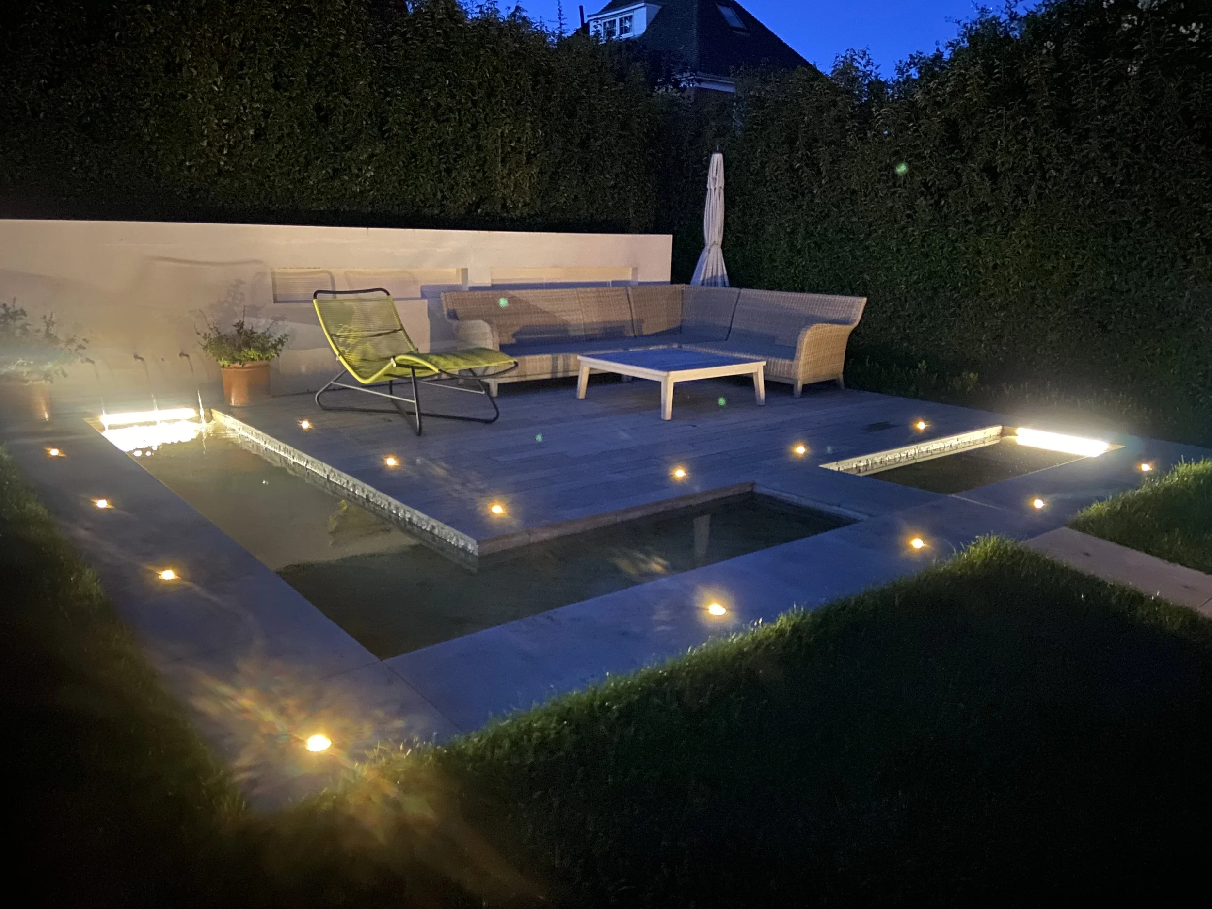 This outside garden project was more than just fitting lights around the water feature. After the plans for the design were drawn up the water feature was concreted, paved, tiled and an electrical wise box was fitted to a remote control to enable the customer to operate all the lights independently. A full pump and filter was installed to ensure the water remained crystal clear during the hottest summer for many years. After the garden was completed a full rewire to the house and power to a new summer house was installed, this included an Rolec car charger to the driveway. One very happy customer if I do say so myself.